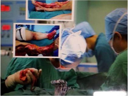 此刻的手术台上,骨科李少华主任和李儒增大夫正在为孕妇做“双下肢皮肤撕脱伤的清创处理”、“头部的清创缝合术”,手术过程顺利,各项生命体征平稳,22:00手术顺利结束,送ICU观察治疗,患者家属激动地流下了眼泪,并连声道谢。